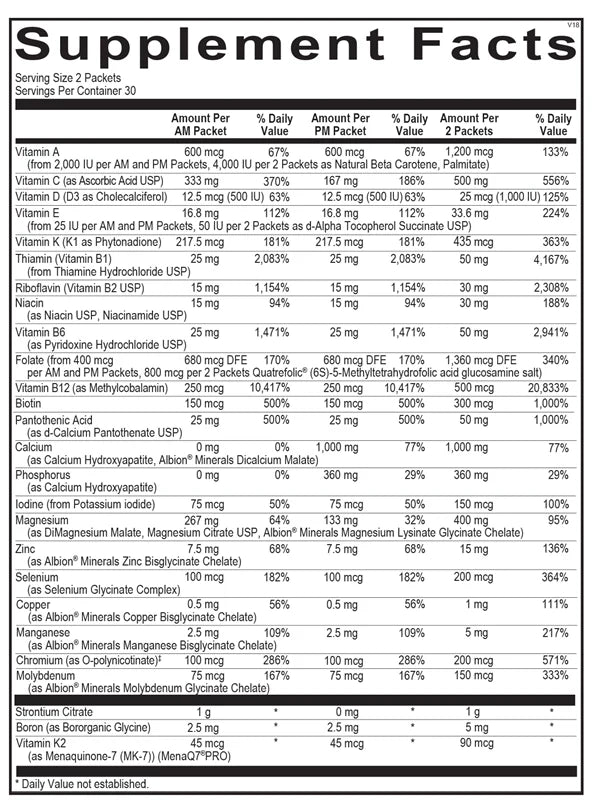 2 packets per day, one AM packet in the morning and one PM packet in the evening or as recommended by your health care professional.